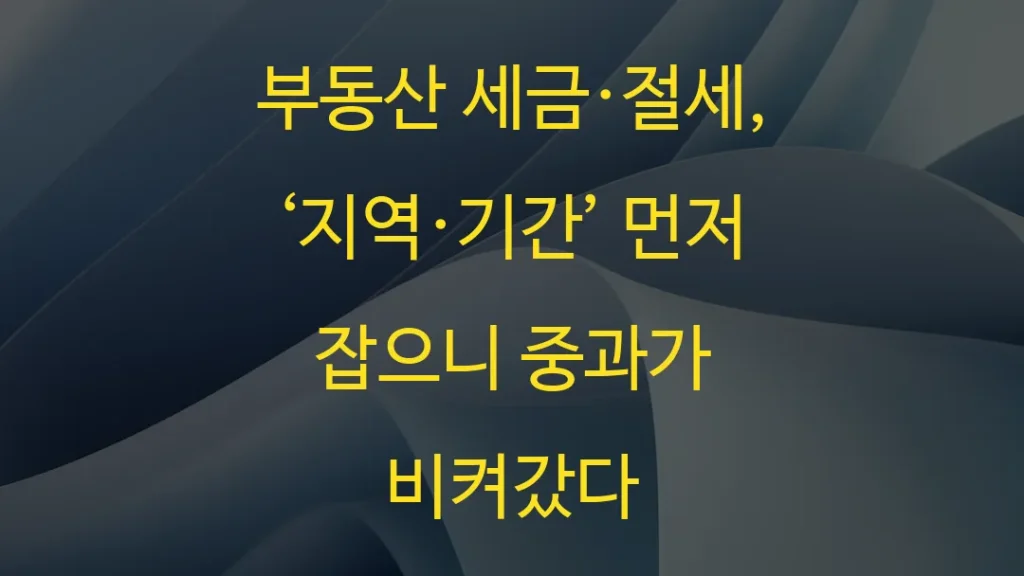부동산 세금·절세, ‘지역·기간’ 먼저 잡으니 중과가 비켜갔다 부동산 세금·절세를 검색하는 순간이 제일 위험할 때가 있습니다. 숫자를 보기 시작하면 사람은